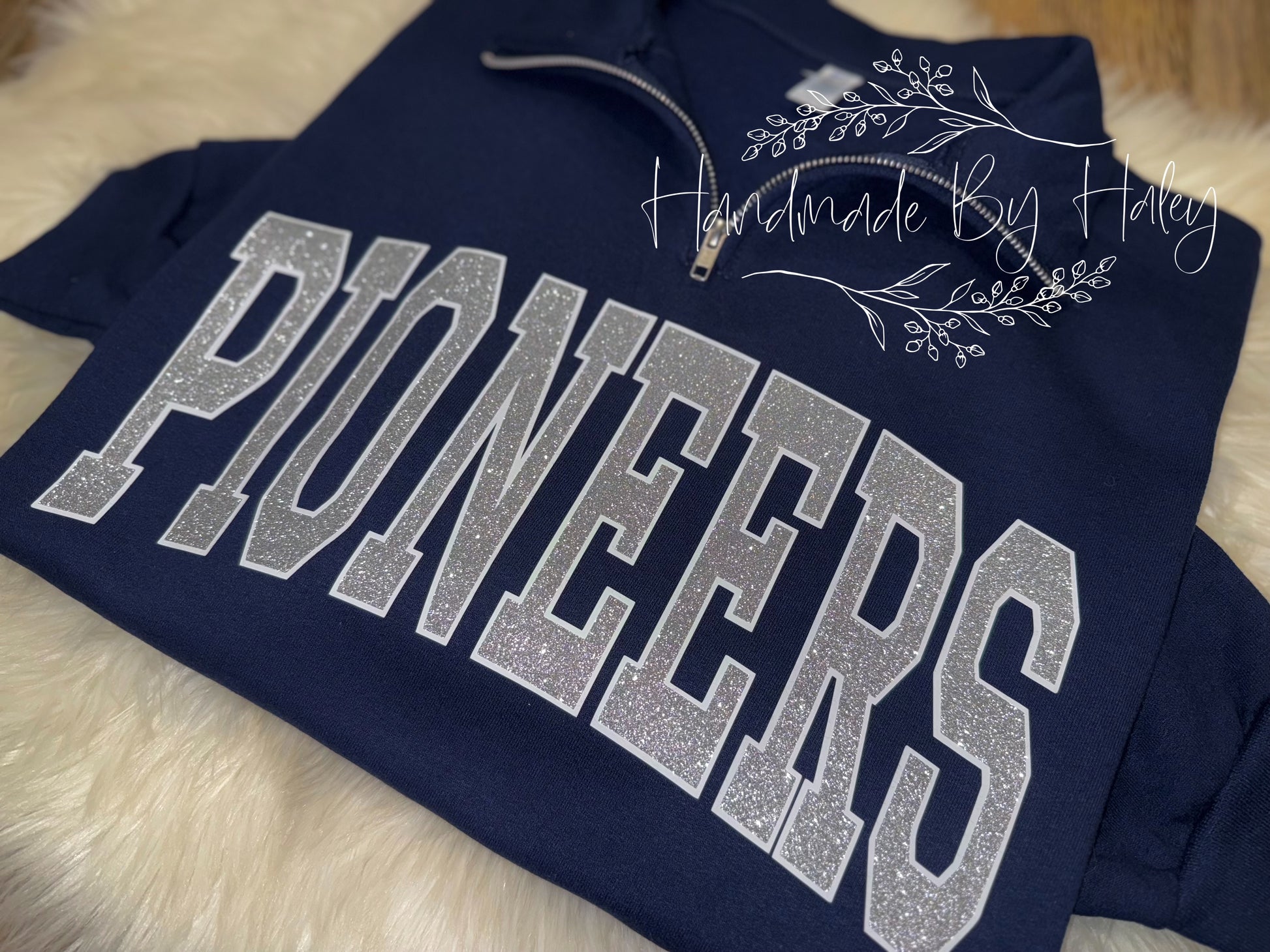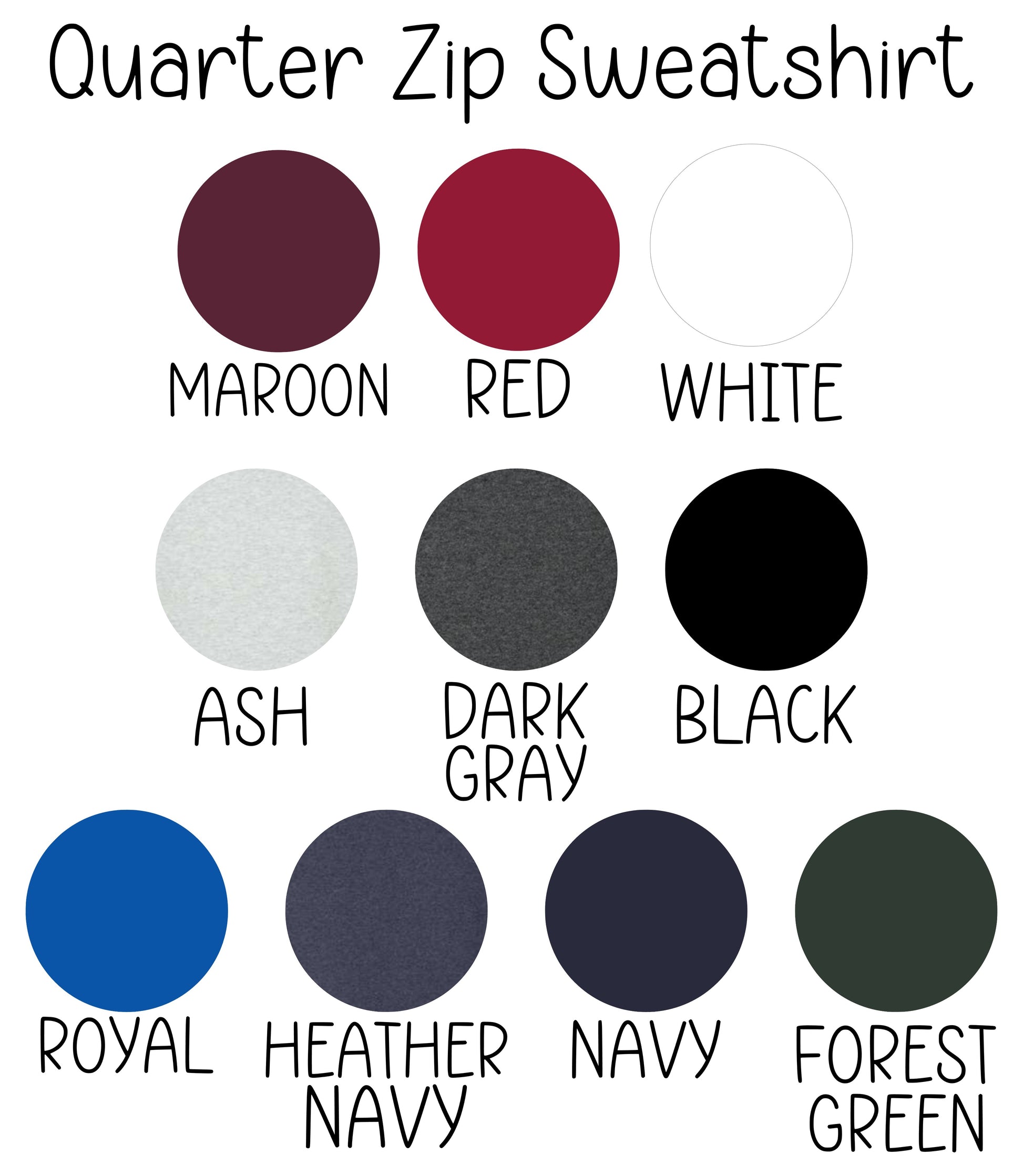 Please leave the following information in your order notes: quarterzip color, text, text color(s), glitter or nonglitter